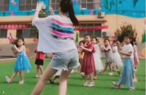 有一天灿灿爸爸下班去接灿灿放学,碰巧看到了灿灿的班主任在带着孩子们跳舞。灿灿爸爸就看入迷了。