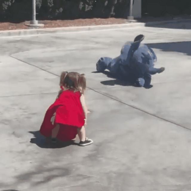 在微博上有一个动态图就看见了可爱的动画人物形象帮助一个小女孩儿,在动图中只有两个人物,一个只有几岁的小女孩儿,一个是动画人物史迪奇的人形玩偶,小女孩儿本来和史迪奇中间还隔着一段距离,但是当孩子看清了史迪奇之后,就开始向他跑去。