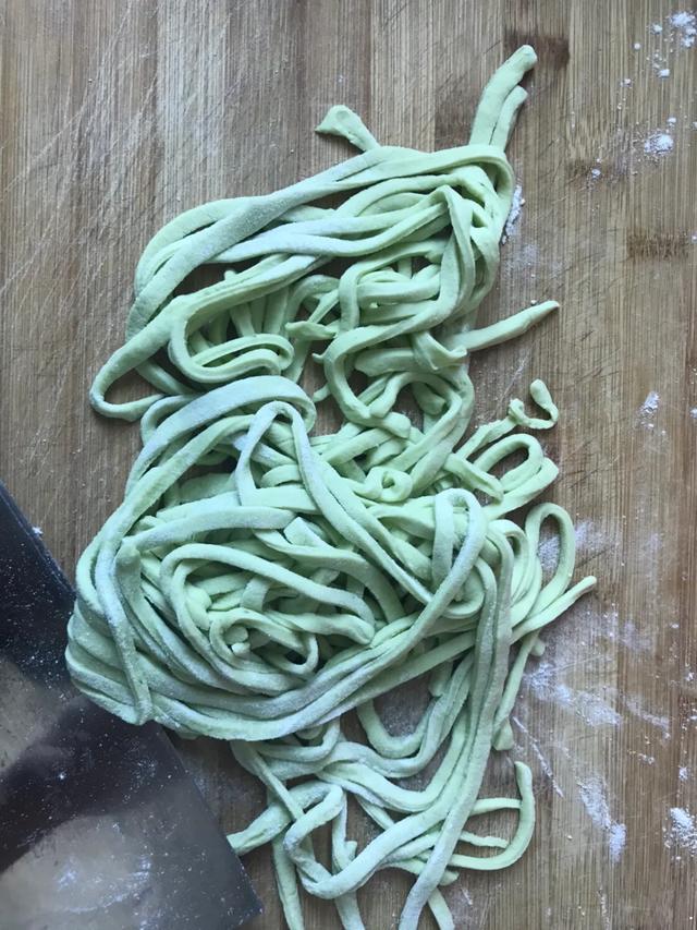 宝宝辅食之青菜汁虾仁手擀面2022-01-18 06:10:44取两颗青菜榨成汁和到面里切成面条水烧开焯水一遍,清水冲洗,再煮熟虾仁清水煮熟捞出备用今天有个错误的示范,不应该把面条榨起来,应该直接煮烂了喂,最好把鸡蛋黄放入,宝宝很喜欢。